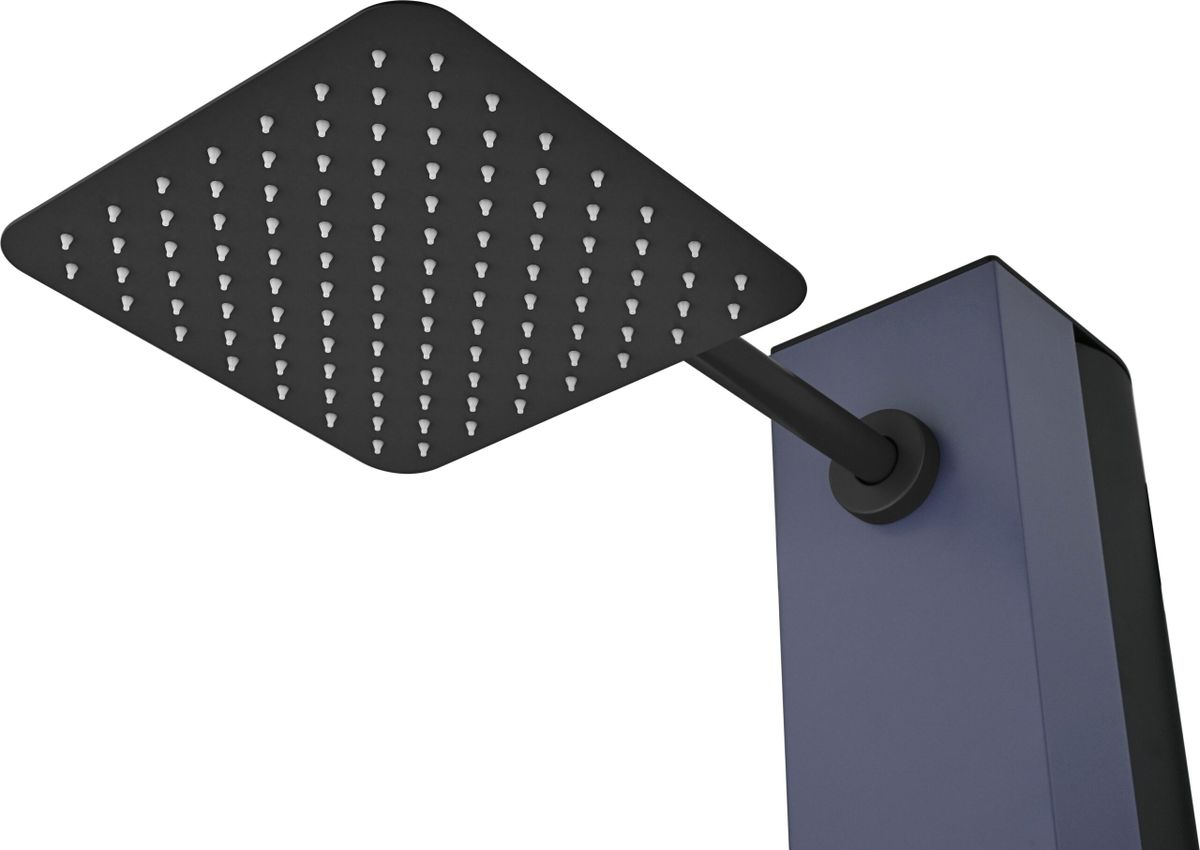 Ducha exterior Phoenix en acero S.316 con acabado azul océano y depósito de 38,8 L. Incluye rociador cuadrado 25x25 cm y mando monomando para un uso cómodo en piscina y jardín. Altura 221,1 cm, pensada para exterior por su alta resistencia a la corrosión.