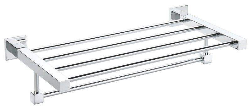 Porta asciugamani tipo hotel con barra. Finitura in ottone cromato. Misura 44,5x10,5x25,5
