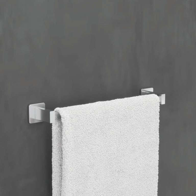 El toallero de 40 cm de la serie TECHNIC ofrece un elegancia para combinar funcionalidad y estilo en cualquier baño. Con un acabado en oro rosa cepillado que aporta brillo y sofisticación, Está disponible en otros acabados: cromo, negro mate, black gun metal y oro cepillado, brindando opciones para personalizar tu espacio. Cuenta con un doble sistema de fijación incluido en el embalaje, que puede ser instalado mediante pegado o atornillado según tus preferencias y necesidades de colocación. Fabricado en acero inoxidable de alta calidad (S.304), garantiza durabilidad y resistencia a la corrosión, asegurando un producto que perdurará en el tiempo mientras mantiene su aspecto impecable.